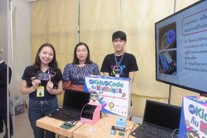 อีกทั้งยังมีต้นทุนการผลิตที่ต่ำลง ด้วยการใช้เครื่องรีทอร์ท นอกจากนี้ผลิตภัณฑ์ที่พัฒนาขึ้นยังมีโปรตีนสูงถึง 28 – 30 กรัม ต่อ 350 มิลลิลิตร และยังได้มีการพัฒนารสชาติของเครื่องดื่มควบคู่กับการพัฒนาตัวผลิตภัณฑ์ ทำให้ได้เวย์โปรตีนที่มีคุณสมบัติเฉพาะและยังมีรสชาติที่อร่อยอีกด้วย ธนาคารทรัพยากรชีวภาพแห่งชาติ (National Biobank of Thailand) เป็นหนึ่งในโครงสร้างพื้นฐานทางวิทยาศาสตร์และเทคโนโลยีแห่งชาติ ด้วยการใช้ประโยชน์จากทรัพยากรชีวภาพที่ได้ชื่อว่าไทยเป็นหนึ่งในประเทศที่มีความหลากหลายทางชีวภาพมากแห่งหนึ่งของโลก ก่อให้เกิดการพัฒนาสังคมและเศรษฐกิจของประเทศ ไม่ว่าจะเป็นอุตสาหกรรมเทคโนโลยีชีวภาพ ด้านการเกษตรและอาหาร ด้านชุมชนและสิ่งแวดล้อม และด้านส่งเสริมสุขภาพและคุณภาพชีวิต Kidbright chem kid: เครื่องอ่านสีสารละลายเพื่อการศึกษาทางด้านเคมี โดย เนคเทค สวทช. เครื่องอ่านสีตามความเข้มข้นของสารเคมีในบ่อเพาะเลี้ยงสัตว์น้ำเศรษฐกิจด้วยเทคโนโลยีเชิงแสงร่วมกับการเขียน Coding ผ่าน KidBright IDE ซึ่งจะอ่านค่าสีของน้ำที่เกิดจากปฏิกิริยาเคมีของชุดทดสอบกับสารเคมีในน้ำจากบ่อเพาะเลี้ยง ซึ่งเครื่องนี้จะช่วยแก้ปัญหาความผิดพลาดจากการอ่านค่าสีของสารเคมีในน้ำด้วยตาเปล่าที่พร้อมถ่ายทอดเทคโนโลยีให้กับเกษตรกรกลุ่มผู้เพาะเลี้ยงสัตว์น้ำ ผู้ผลิตหรือจำหน่ายชุดทดสอบคุณภาพน้ำ หน่วยงานบริการและตรวจสอบคุณภาพน้ำ ผู้ผลิตสื่อการ